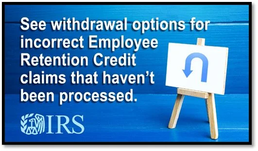#IRS has a withdrawal option for those who have an unprocessed Employee Retention Credit. If you filed an incorrect claim, take a look at the special #IRS guidelines: https://ow.ly/5ygU50PYKaF #ERC #ERTC